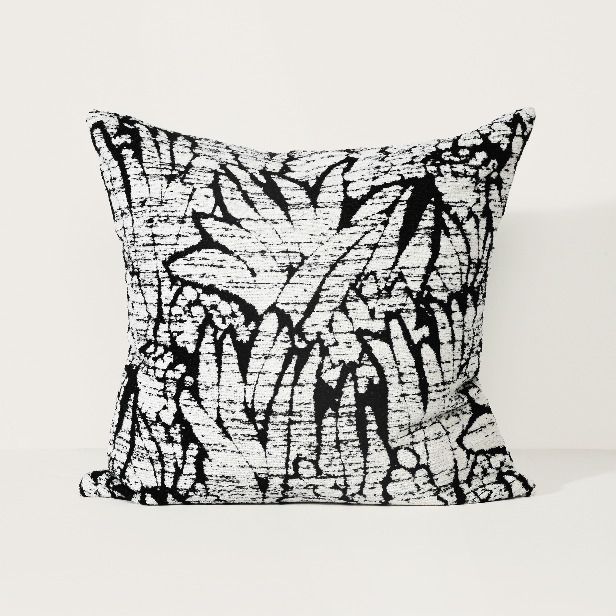 Black Palm softens the monochromatic pallet by weaving black into a rich off white fabric. Large abstract palm leaves reimagine a comforting nature inspired pattern. As with all our cushions, it includes our signature generous feather fill and is available in a square and rectangular shape.