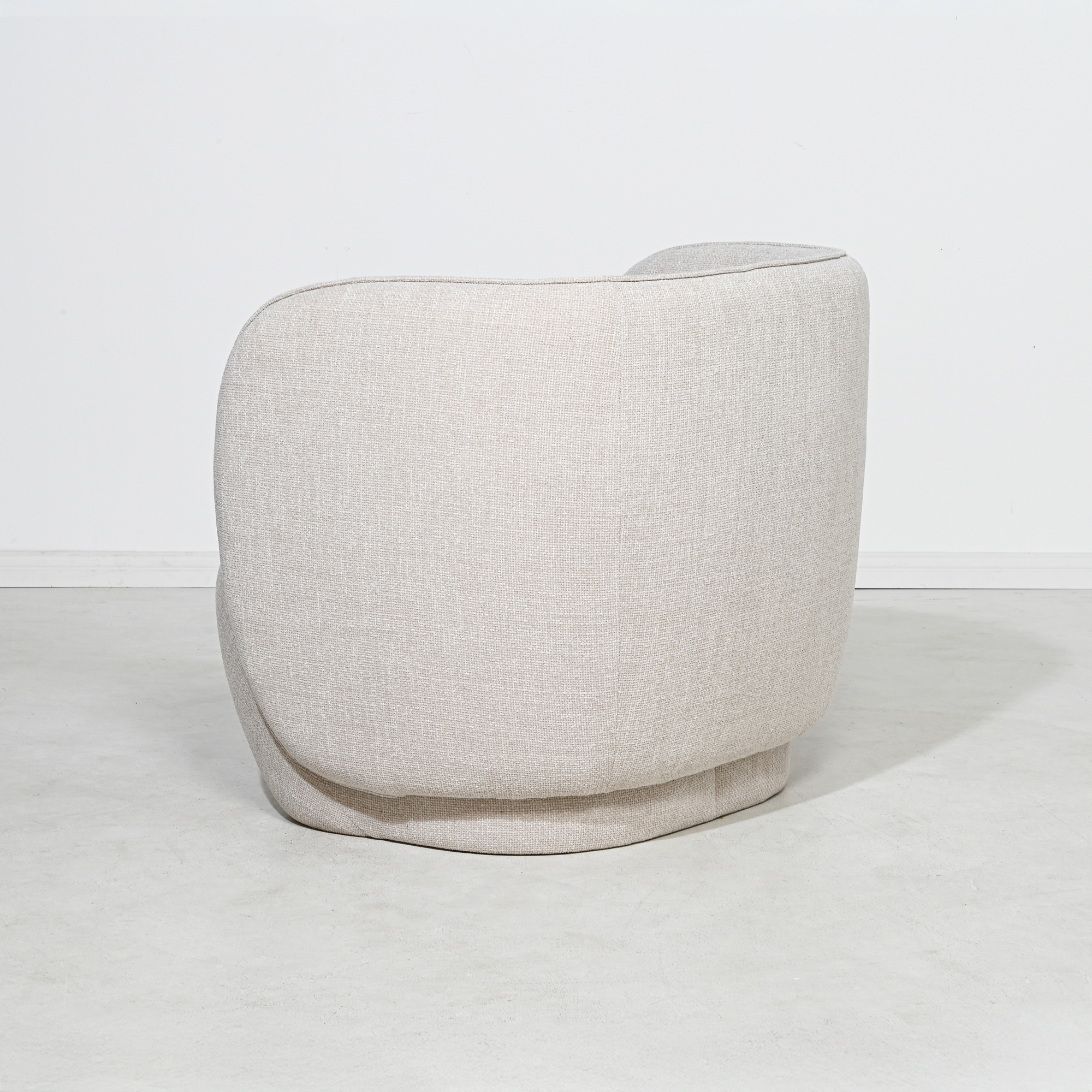 From every angle, the Felix Chair offers visual harmony. Its rounded geometry softens its bold form, allowing it to sit beautifully in open-plan layouts, living rooms, bedrooms, or commercial spaces looking for a hero feature. Whether placed on its own or styled with complementary pieces, the Felix Chair is a sophisticated statement—effortlessly modern and endlessly comfortable. Compliment your setting with this round natural contemporary tub chair.