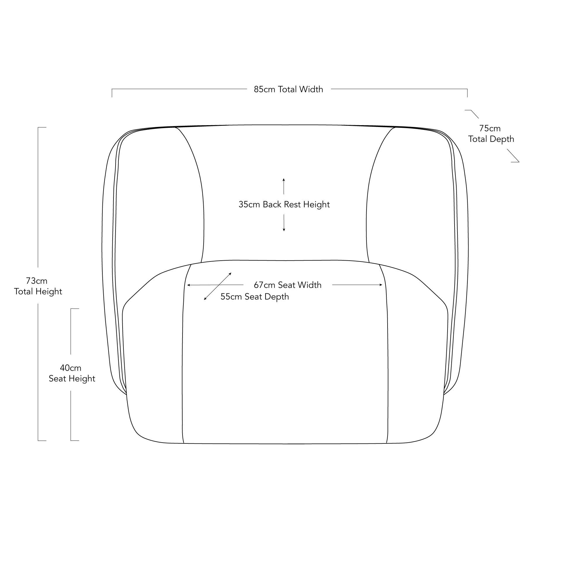 Overall dimensions (cm): 73 H X 85 W X 75 D