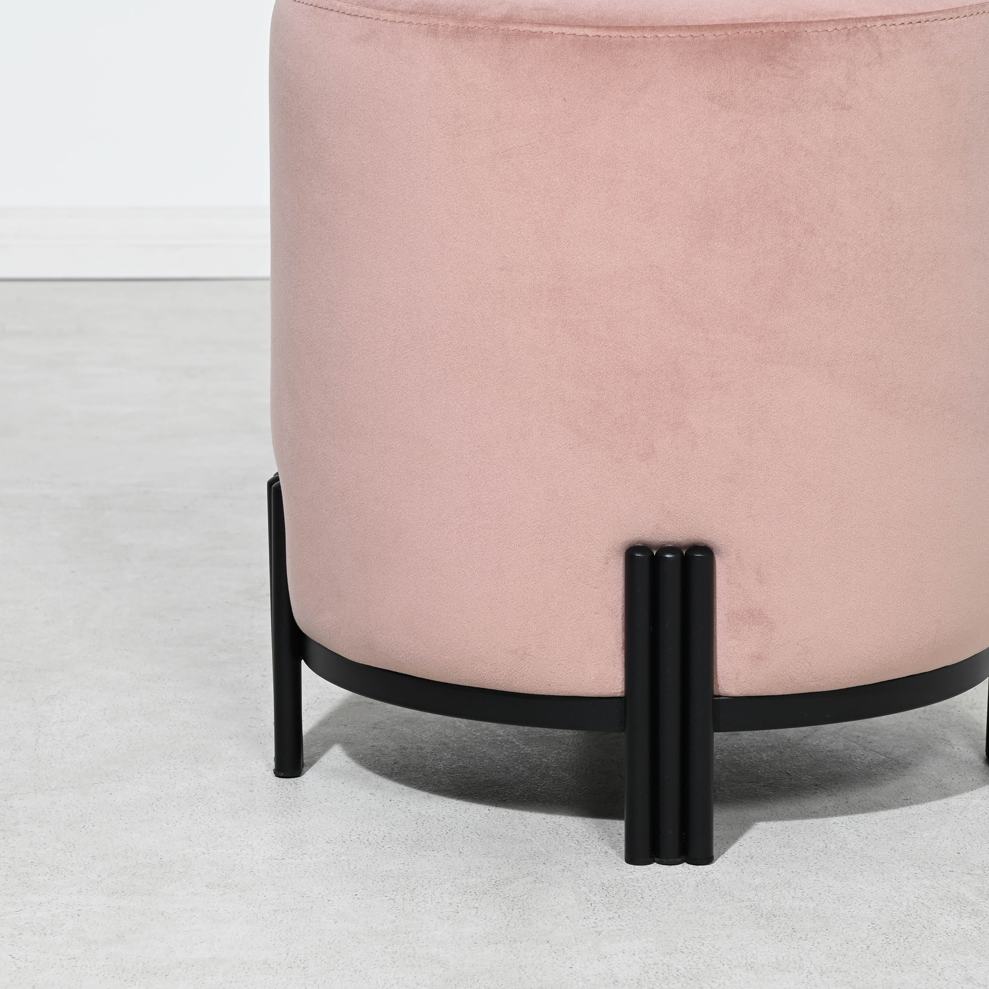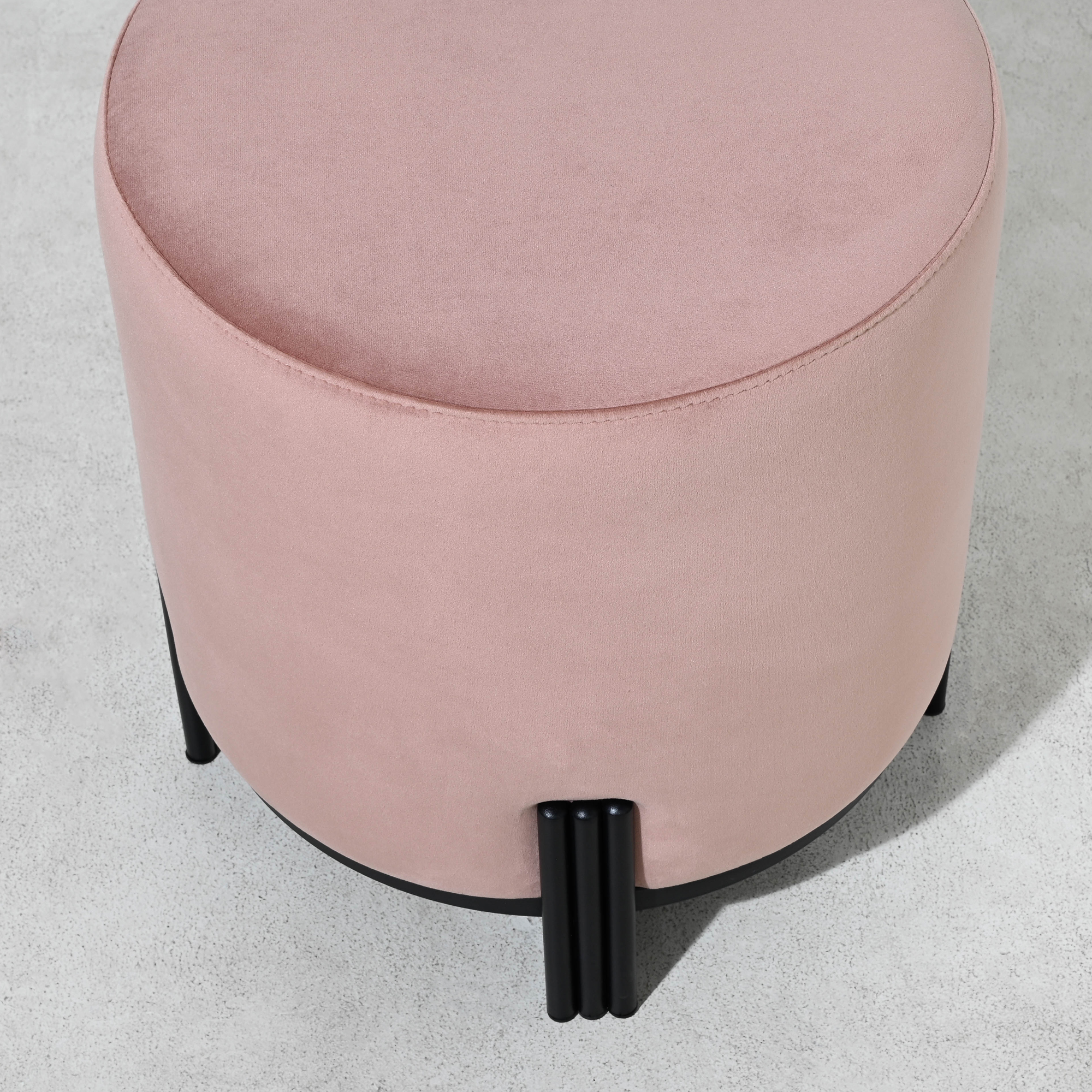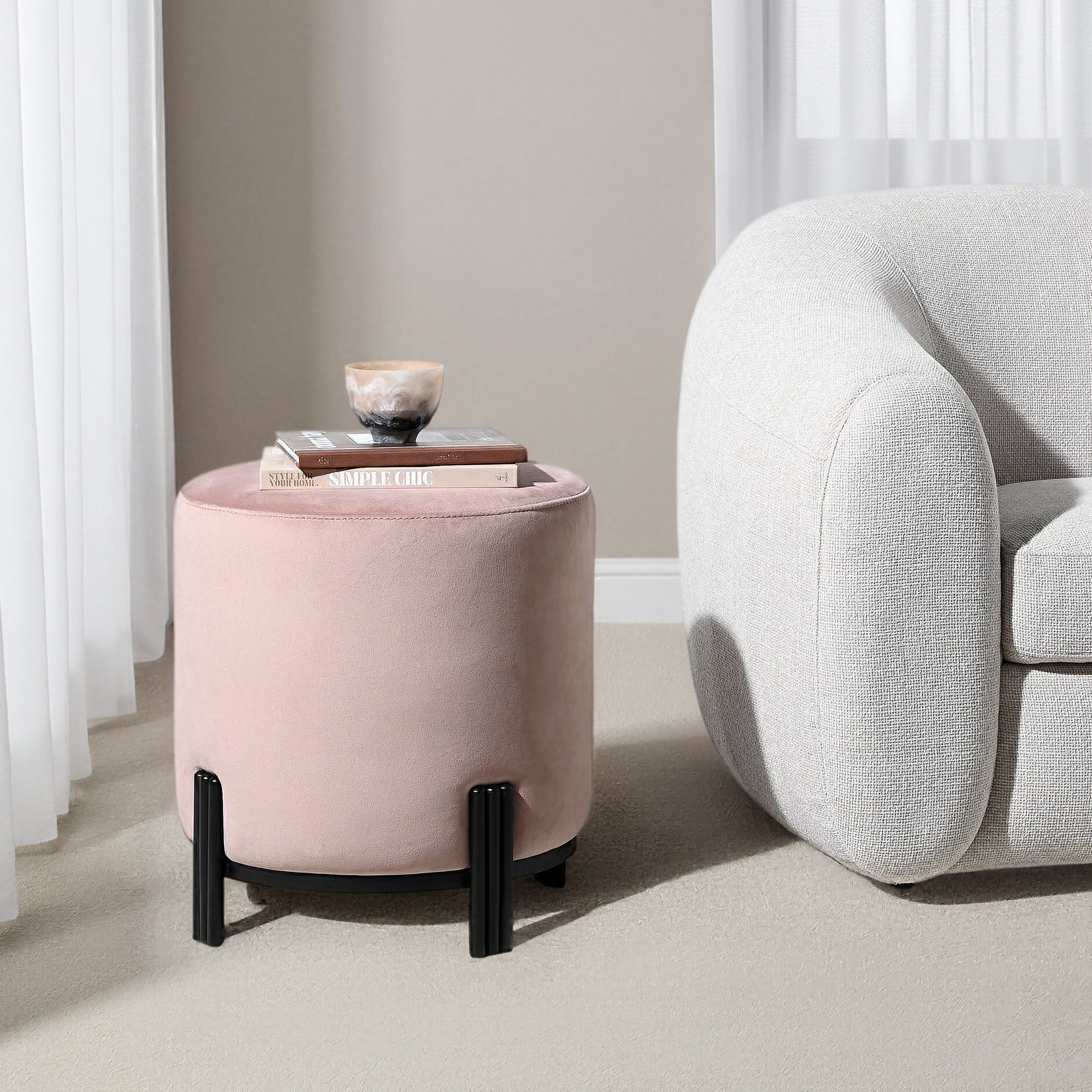Introducing our stylish round pink velvet ottoman, featuring unique metal legs. Available in both brushed gold and matt black finishes, these legs add a touch of elegance to any room. The ottoman is available in a variety of colors to match any decor. Use it as an extra seat, a footrest, or even as a coffee table. Add a touch of sophistication to your living space with this versatile piece.