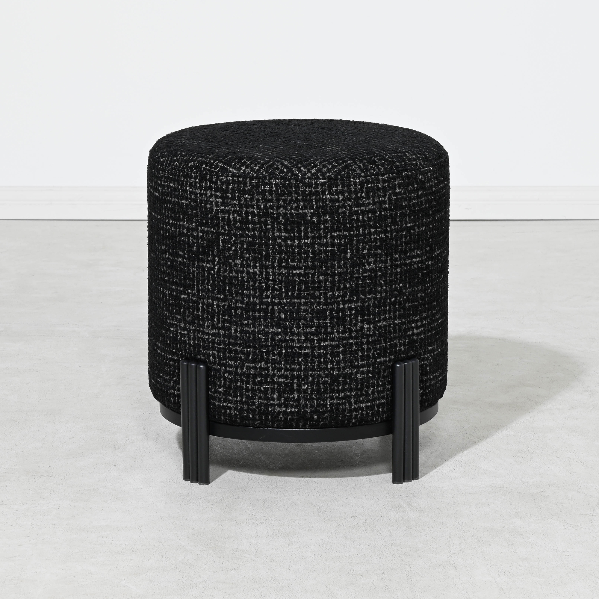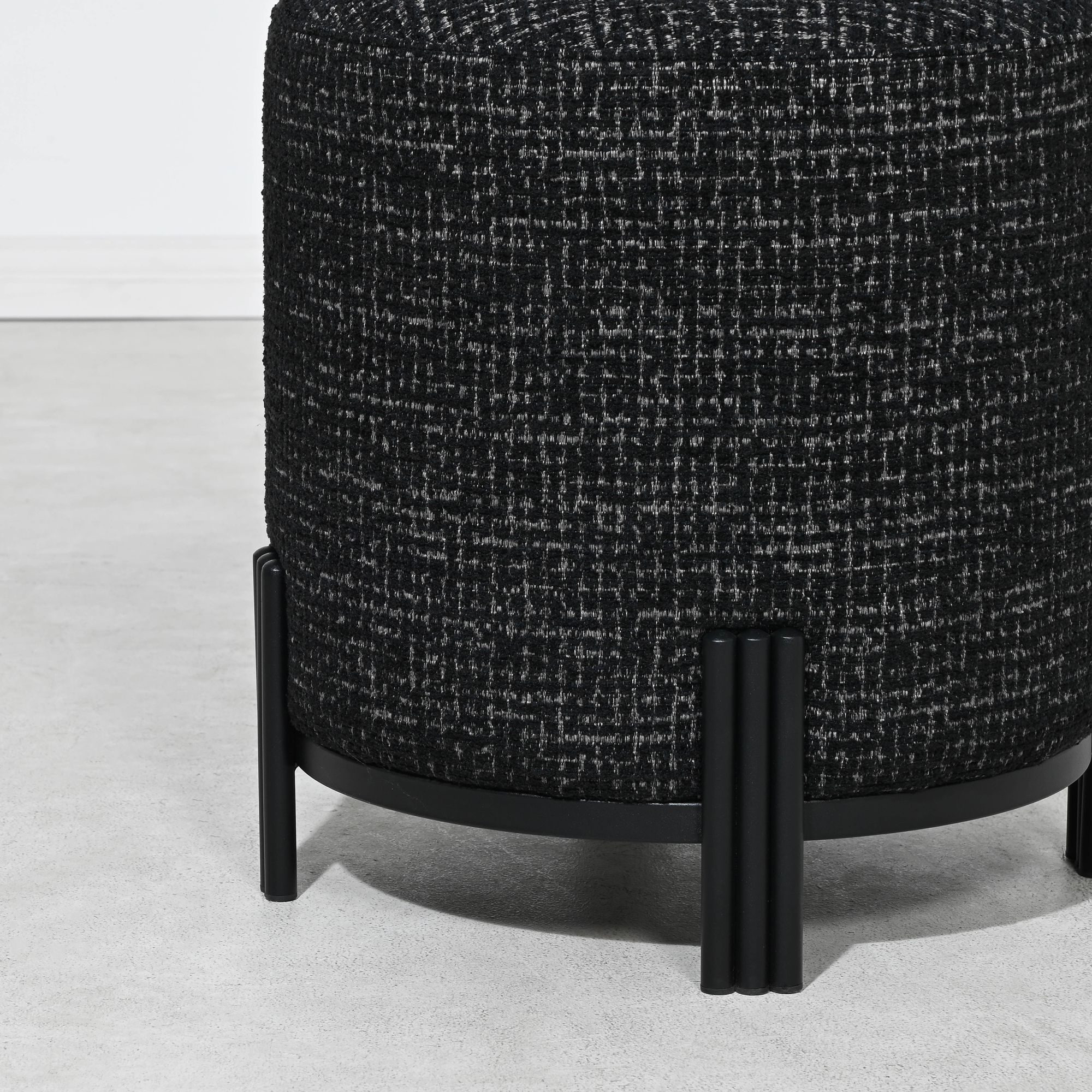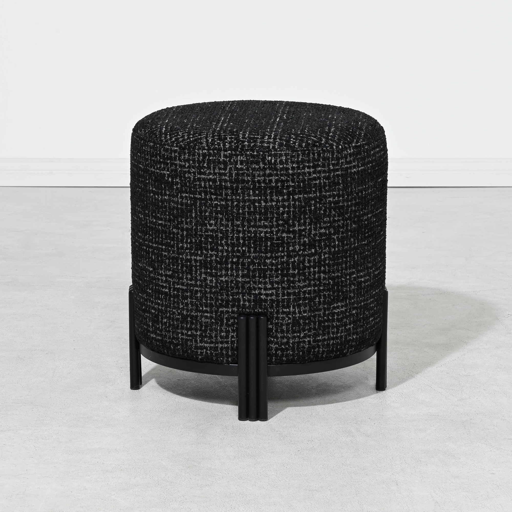 Introducing our stylish round grey boucle ottoman, featuring unique metal legs. Available in matt black finishes, these legs add a touch of elegance to any room. The ottoman is available in a variety of colours to match any decor. Use it as an extra seat, a footrest, or even as a coffee table. Add a touch of sophistication to your living space with this versatile piece.
