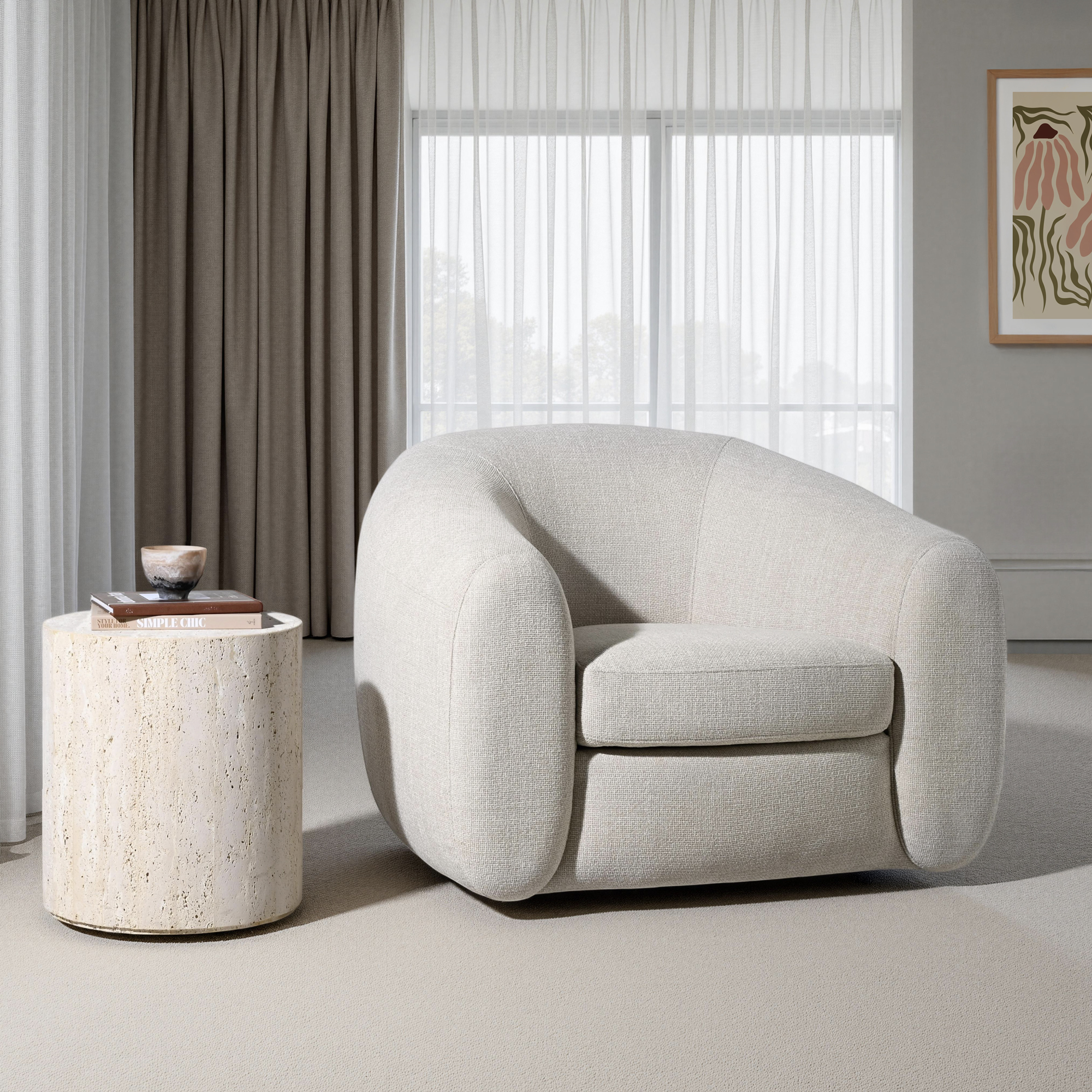 The Mateo’s harmonious and flowing lines, combined with generous proportions, evoke a sense of timeless comfort. Elevate your space with this chacha beige round armchair.