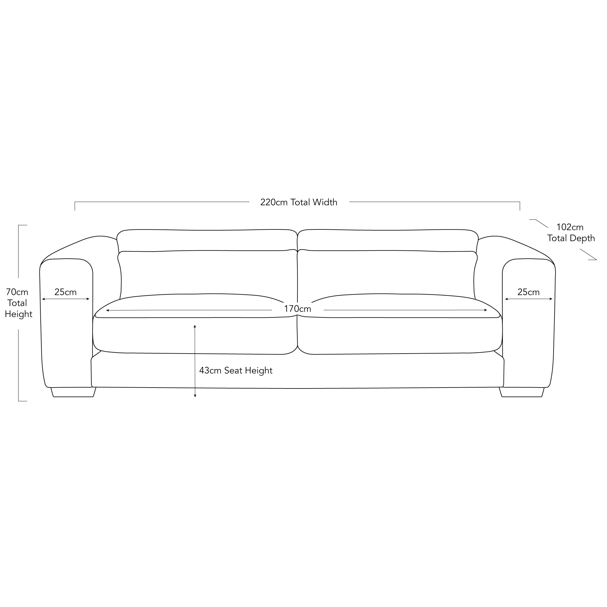 Overall dimensions (cm): 70 H X 220 W X 102 D