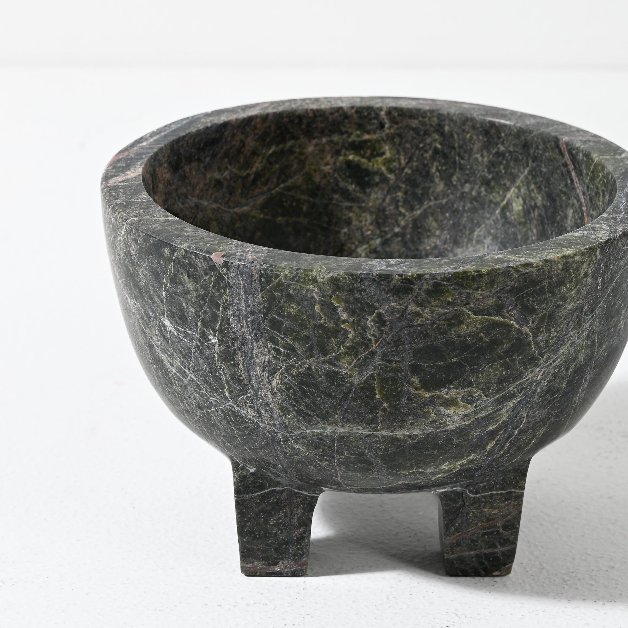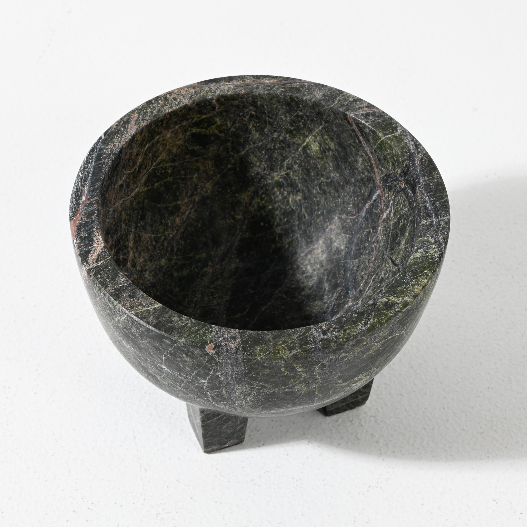 The Namib Footed Bowl in green marble is a bold expression of sculptural form and natural elegance. Carved from richly veined stone, this piece features a deep, rounded bowl raised on four solid legs—creating a silhouette that feels both primal and contemporary.