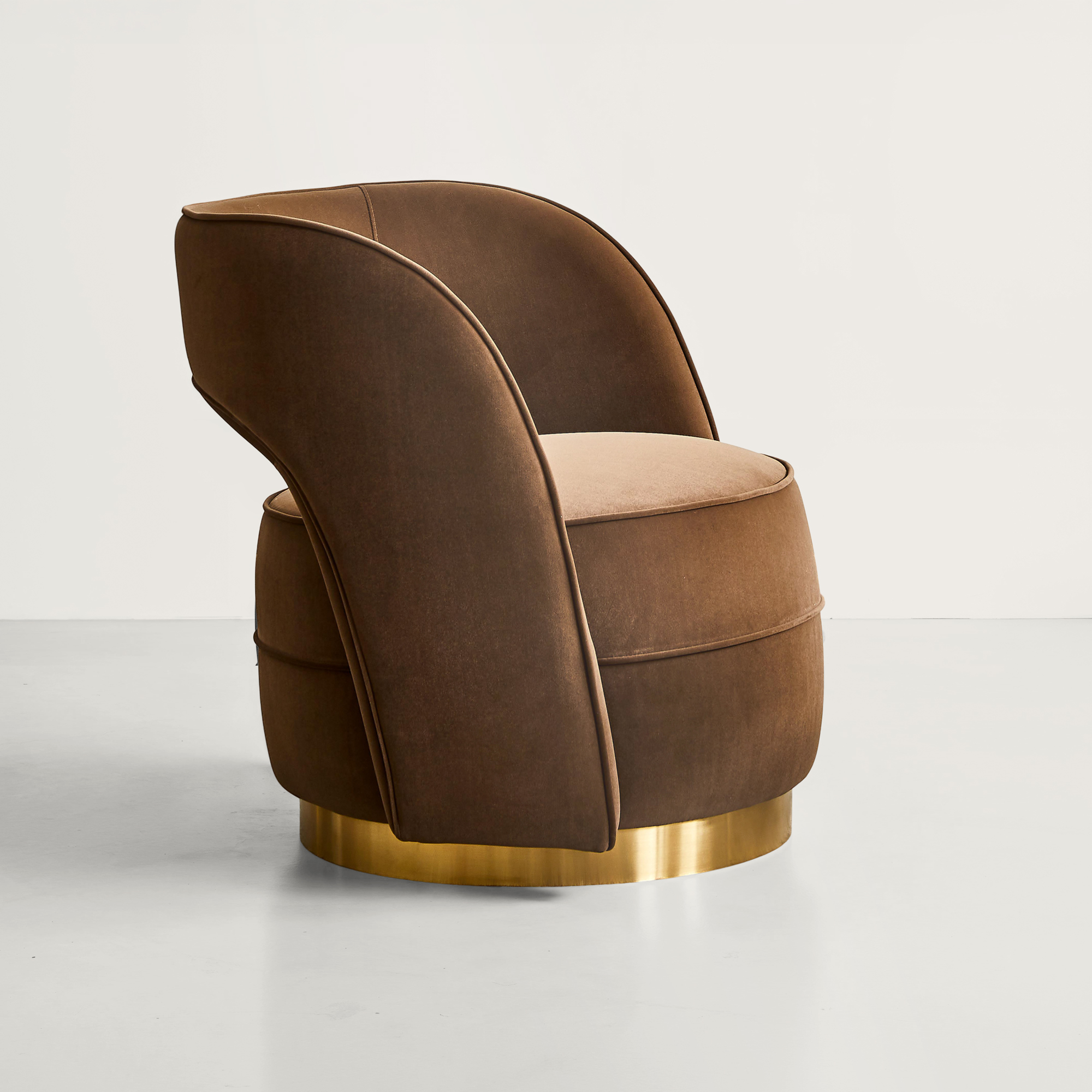 Designed by Dutch fashion designer Mart Visser, this chair has thoughtful detailing and a perfect curve, seated on a brushed metal base. It shape and size is space conscious, making it an ideal occasional chair for the living or bedroom space. Look no further for the perfect brown velvet armchair.
