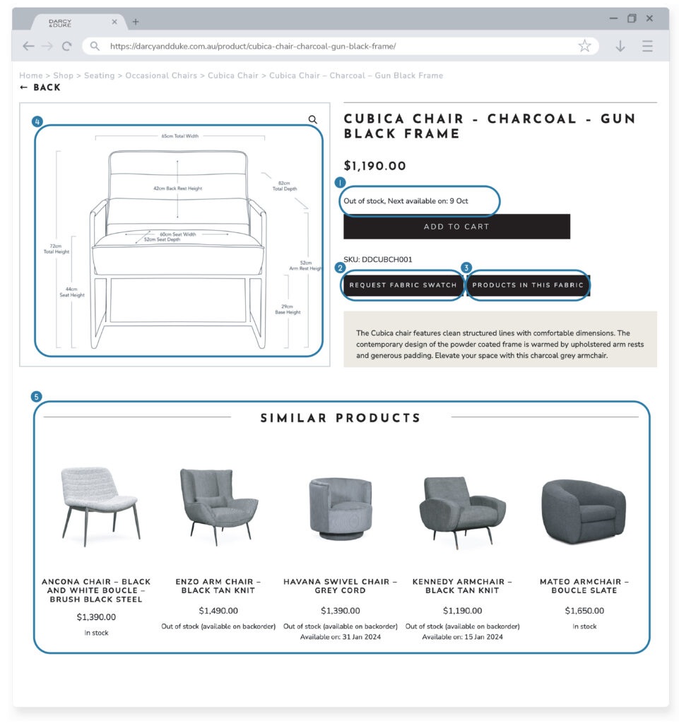 Our website is designed to make your experience with Darcy & Duke as seamless and informative as possible. Explore the range of helpful tools available on each product page to assist with your selection and planning.